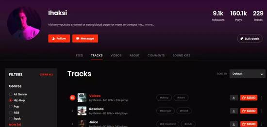 很快,我找到了男猪脚,北欧浪子,这是他的Beatstars主页: