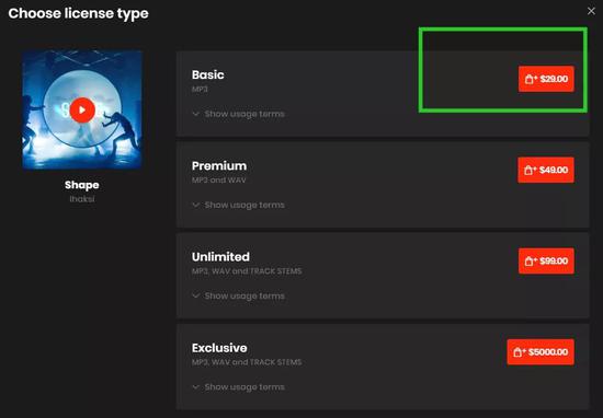 因为曲子可以重复销售,所以Beatstars上的曲子价格都很便宜,在这里,地下饶舌穷屌丝也能轻松拥有自己的梦幻Beat,Basic(基础版)只要几十刀,就能即刻拥有。