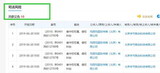 19年6月份哐哐告了头条10个诉讼,而且都是著作权相关的: