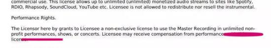 老舅买的是网站上明码标价的99刀的“无限制版本”而且我查了一下,页面上有非常显著的权利标注:允许获利的现场表演等权限。